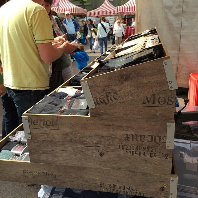 The most hipster socks ever being sold from recycled wine crates